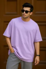 Men’s Lavender Drop Shoulder T-Shirt – Loose Fit Crew Neck Oversize Tee | 100% Cotton