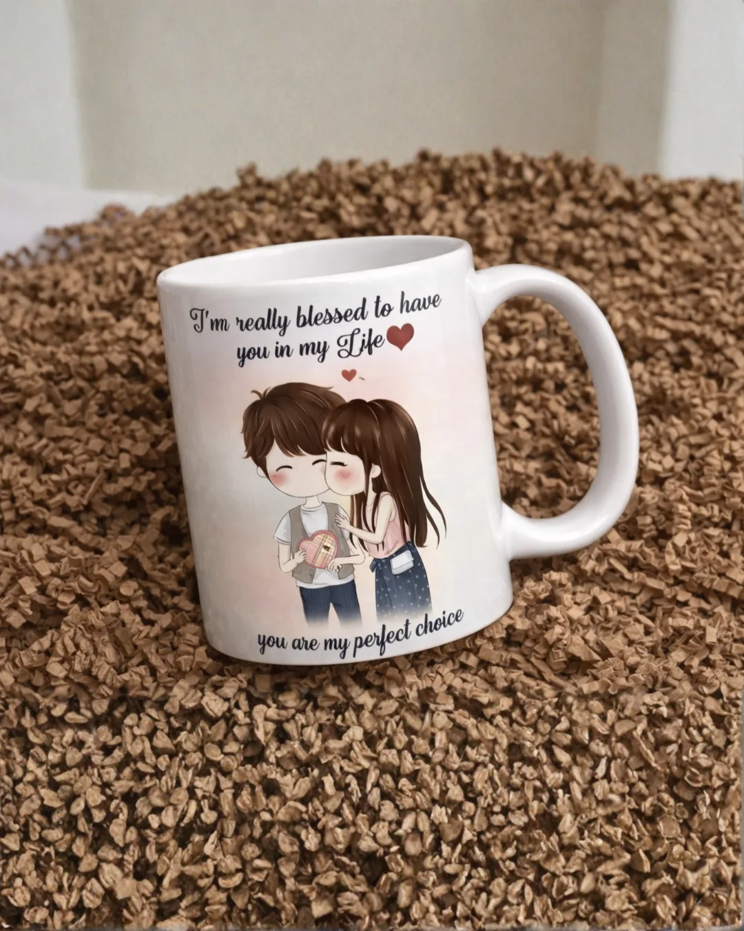 Express your love in the most adorable way with this romantic couple ceramic mug. Featuring a cute illustrated couple and a heart-touching quote, this mug makes every sip special. Crafted from premium quality ceramic, it offers durability, comfort, and a smooth glossy finish.